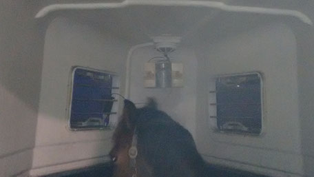 Im Pferdeanhänger erleben die Pferde keinerlei Stress oder Panik, sie genießen das angenehme Klima und erfreuen sich gegebenenfalls am Heu. Danach sollten die Pferde bewegt werden, damit der